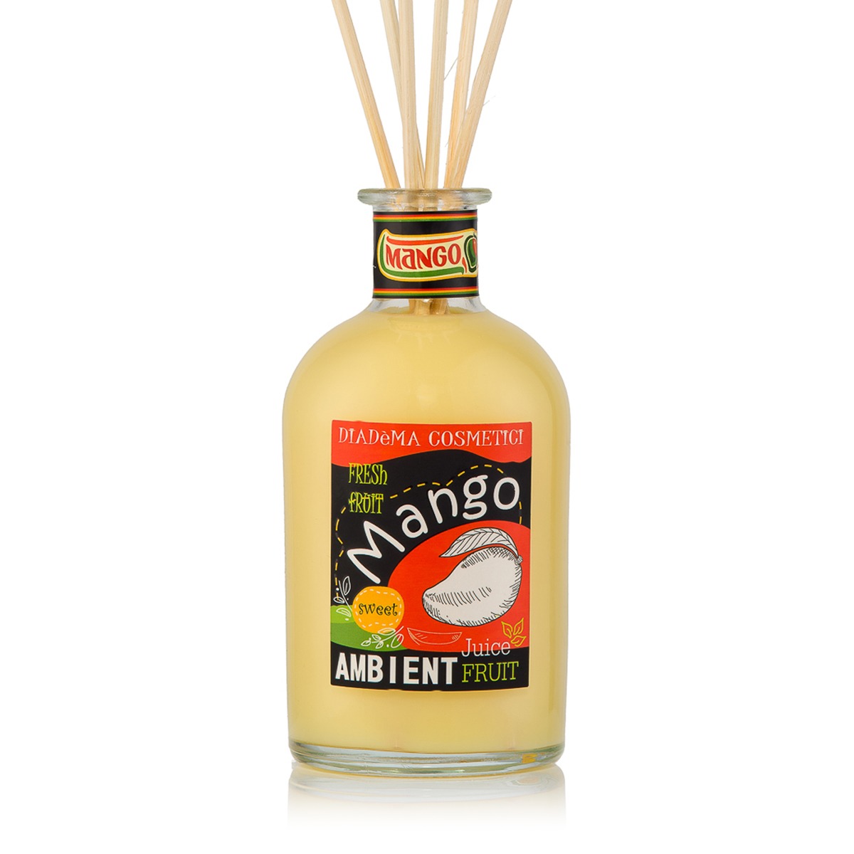 Il vecchio ricordo di un viaggio a Cuba e l’odore inebriante e persistente di Mango che invade le strade. Il diffusore succo concentrato del frutto è raccolto in una bottiglia latina, pronto per farti rivivere, appena aperto a casa tua, un’ esperienza indimenticabile.